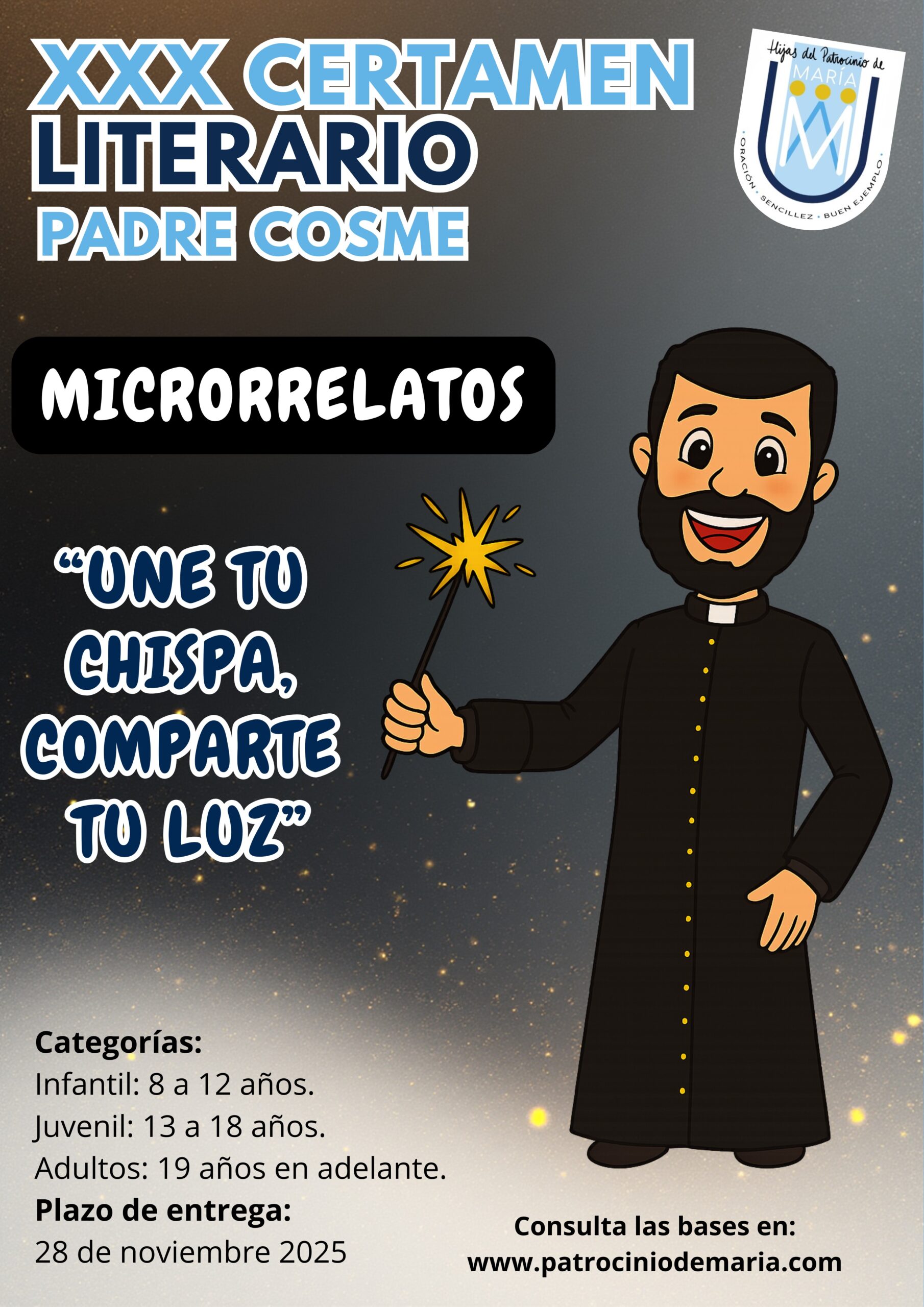 XXX Certamen Literario “Padre Cosme” Un año más, los colegios del Patrocinio de María se unen para celebrar la palabra, la creatividad y la fe en nuestro Certamen Literario “Padre Cosme”, que este 2025 cumple su 30ª edición. Modalidad:...